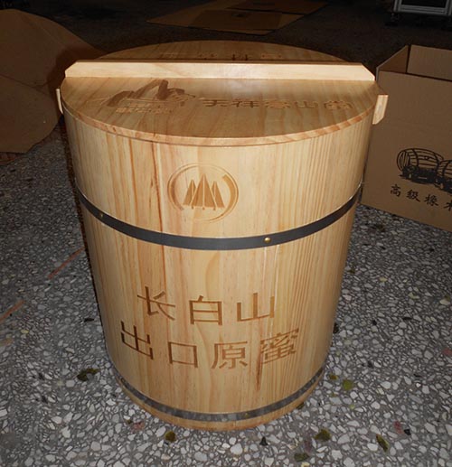 釀酒過程中,木桶比較多,為了方便酒品信息識別,都會在木桶上做標(biāo)記。傳統(tǒng)的噴印容易磨損,激光雕刻是不易磨滅的,并且可以在桶面上雕刻任意圖案文字。