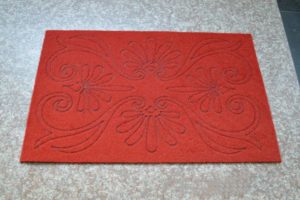 色調柔和的地毯采用激光切割,打造爛花效果和天然風格,文字短語用毛氈切割而成,形成趣味的地毯設計,細致優雅的圖案地毯用仿木材乙烯基制成,幾何地毯用厚毛氈制成,彰顯圖像用木材激光切割三角形,并將其附著在紡織基底上,從而打造出“半木半紡織”的地毯。