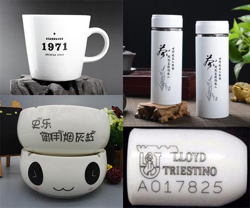 激光在陶瓷上打標黑色的效果在很大程度上取決于陶瓷的種類。一般情況下總會去除一點點材料,家用陶瓷如瓷器可以被雕刻。工業用陶瓷通常有耐熱的特性,表面更加平滑,雕刻的效果看起來特別整潔。