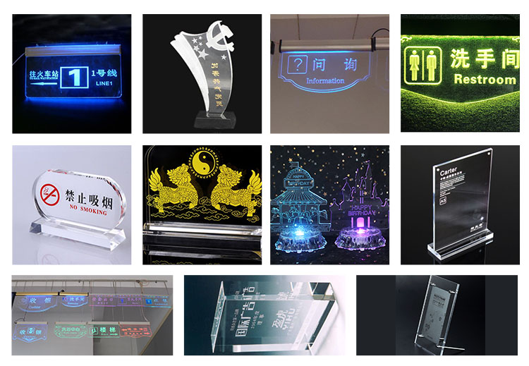 有機玻璃擺件、吊牌、掛件、指示牌激光雕刻樣品圖