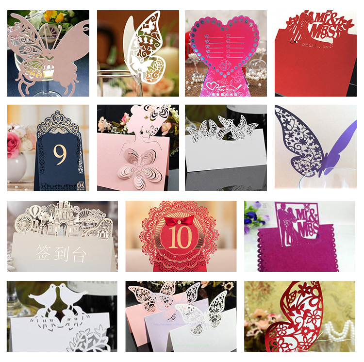 紙質杯卡、桌卡、席位卡激光雕刻樣品圖